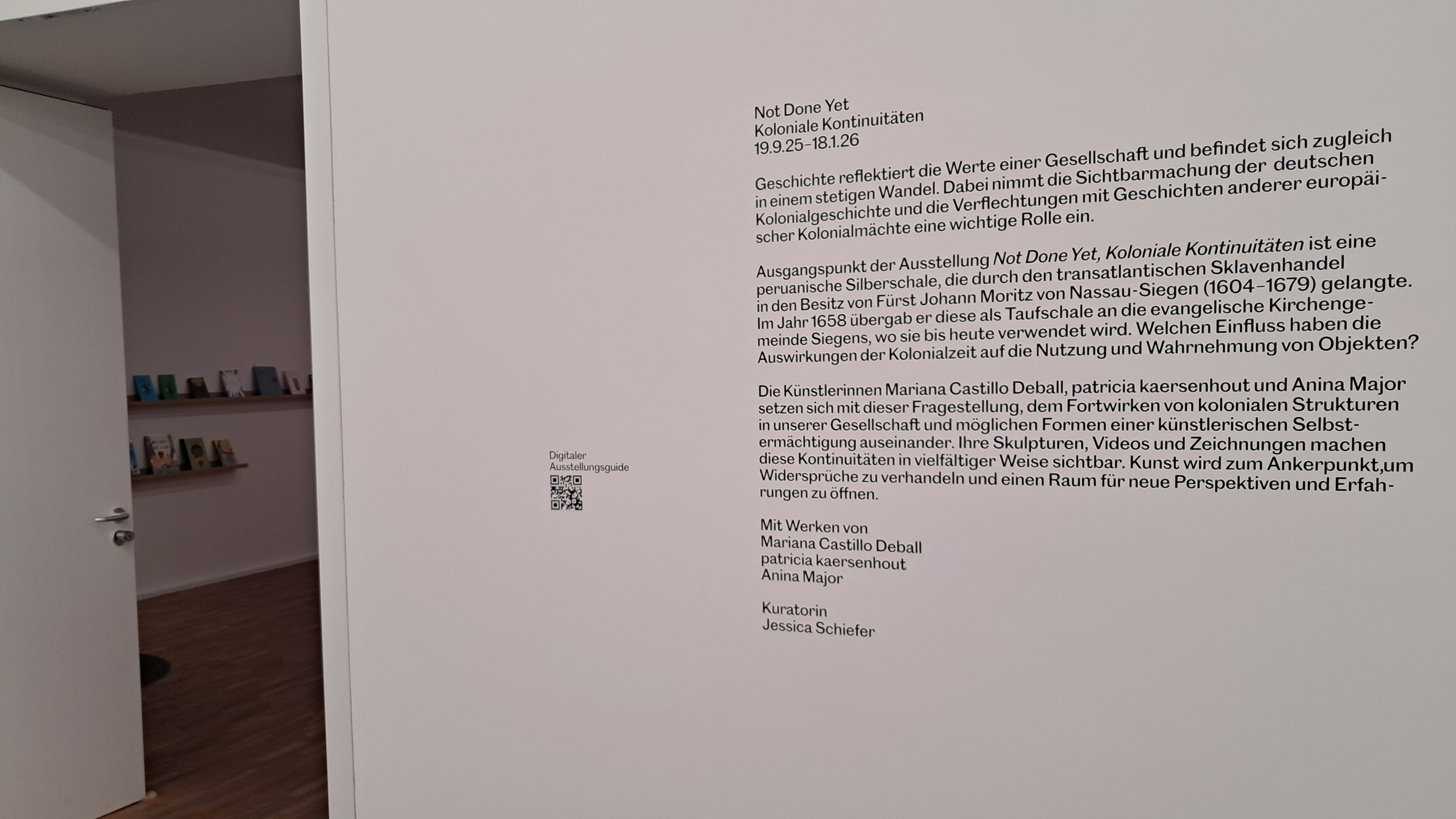 Die Künstler*innen Mariana Castillo Deball, patricia kaersenhout und Anina Major setzen sich mit dieser Fragestellung, dem Fortwirken von kolonialen Strukturen in unserer Gesellschaft und möglichen Formen einer künstlerischen Selbstermächtigung auseinander. Ihre Skulpturen, Videos und Zeichnungen machen diese Kontinuitäten in vielfältiger Weise sichtbar. Kunst wird zum Ankerpunkt um Widersprüche zu verhandeln und einen Raum für neue Perspektiven und Erfahrungen zu öffnen.