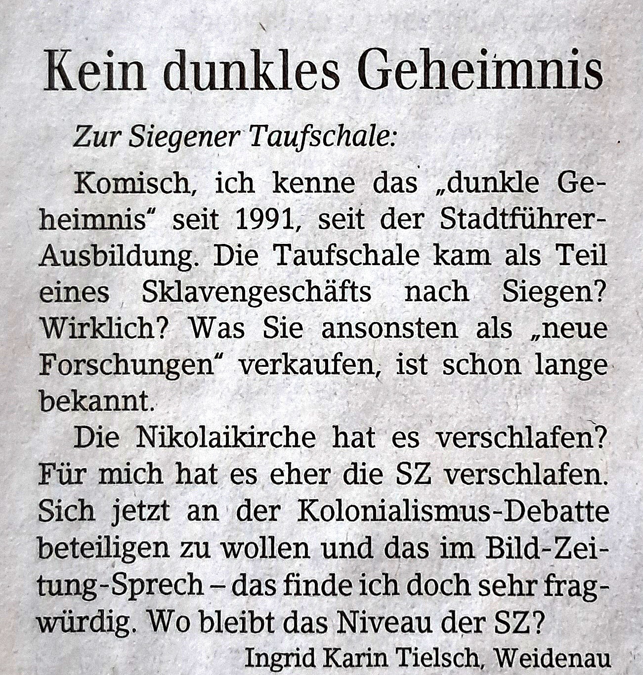 Am 22.11. erschien folgender Leserbrief in der Siegener Zeitung: