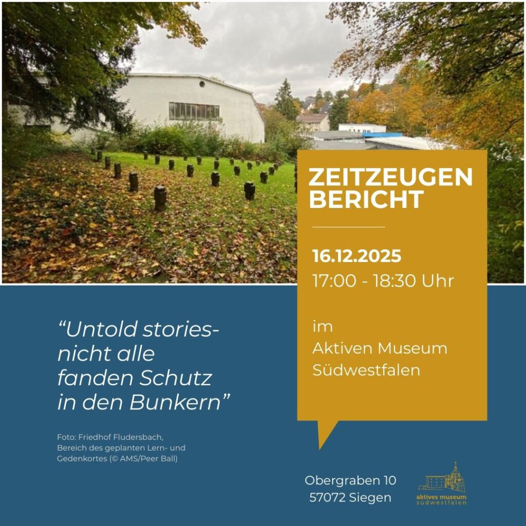 Ort: Aktives Museum Südwestfalen, Obergraben 10, 57072 Siegen (bitte nutzen sie gerne das Parkhaus am Löhrtor mit direkter Verbindung zum Museum)