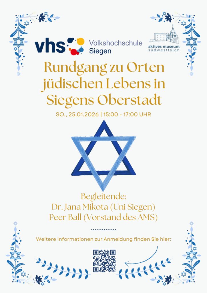 In Zusammenarbeit mit dem Aktiven Museum Südwestfalen e. V. 25. Januar 2026, 15 Uhr Treffpunkt: Aktives Museum Südwestfalen, Obergraben 10, Siegen, Kosten: 5,00 €