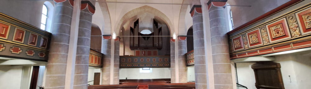 Dort steht Dr. Dirk Spornhauer, der Raumländer Pfarrer, im Chorraum der Kirche, in der er 25 Jahre lang gepredigt hat. Mit Freude zeigt er auf alten Putz, unter dem nach einer Restauration Szenen aus dem Leben Jesu hervorkamen.