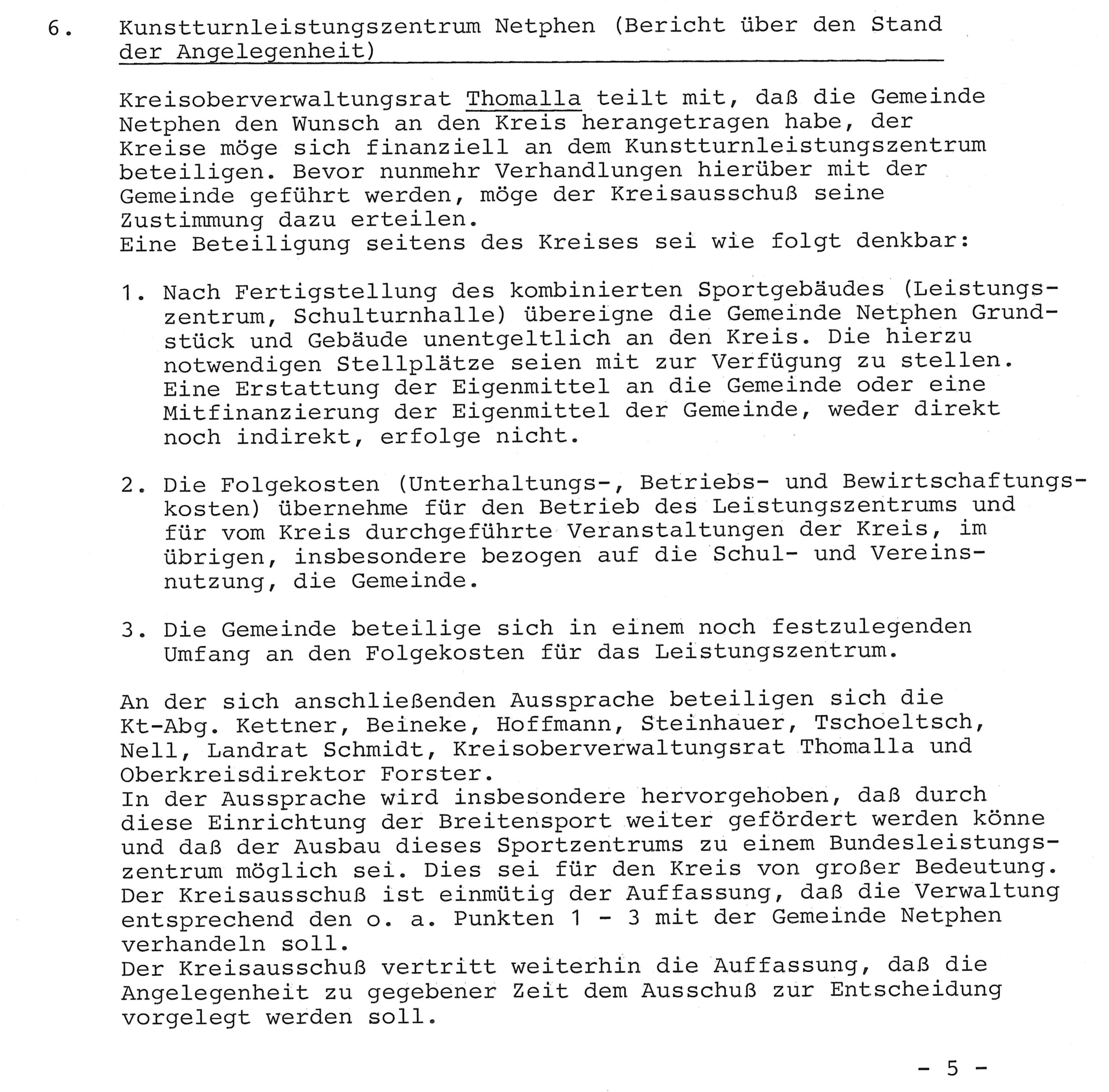 Am 12. /13. und 14. Dezember 1980 fand die Einweihung des Landesleistungszentrums Dreis-Tiefenbach statt. Im folgenden Jahr übertrug die Gemeinde Netphen das Grundstück einschließlich des darauf errichteten LLZ auf den Kreis Siegen, der sich verpflichtete, die Folgekosten mit der Gemeinde Netphen im Verhältnis 40% zu 60% teilen.