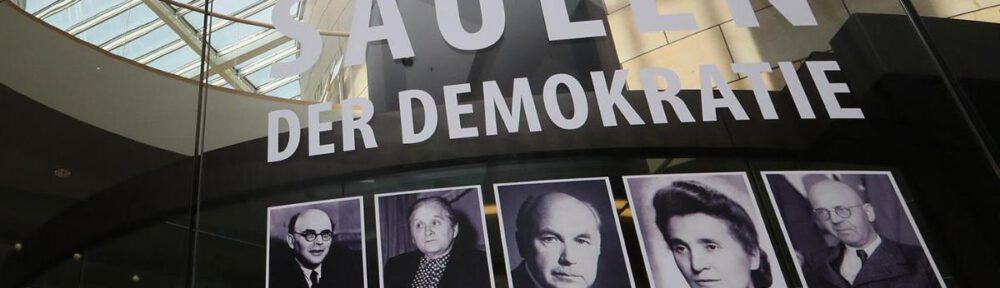 Quelle: Landtag NRW, Pressemitteilung, 5.10.2021; Faltblatt zur Ausstellung „Säulen der Demokratie“ im Düsseldorfer Landtag