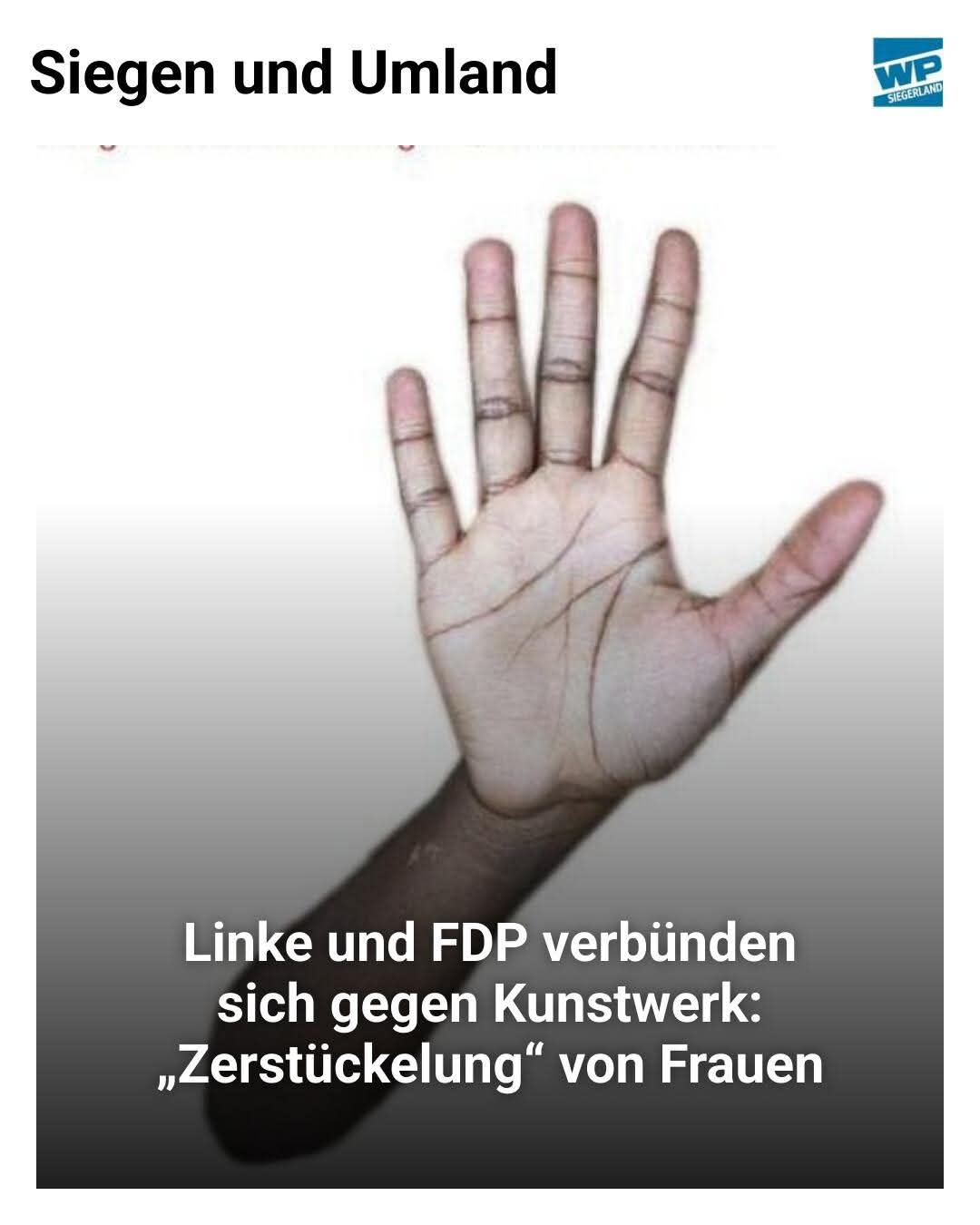 „Wie die abgetrennten Hände auf der A45 bei Olpe? FDP und die Linke will neu über das Frauendenkmal sprechen. ….