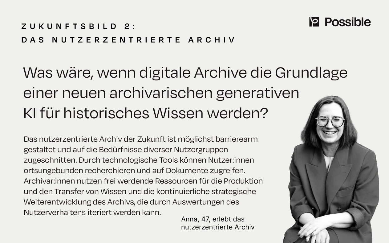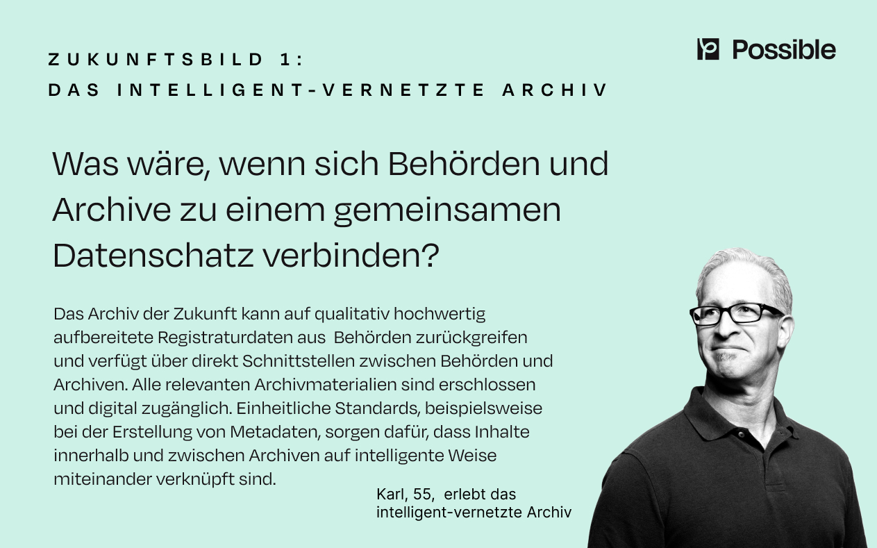 Possible hat gemeinsam mit der Bundesdruckerei einen Bericht verfasst, der das Ziel verfolgt, aufzuzeigen, wie öffentliche Archive zu Zukunftsressourcen werden können und welche Rolle Technologien dabei spielen. Die vollständigen Erkenntnisse finden Sie im Dokument.