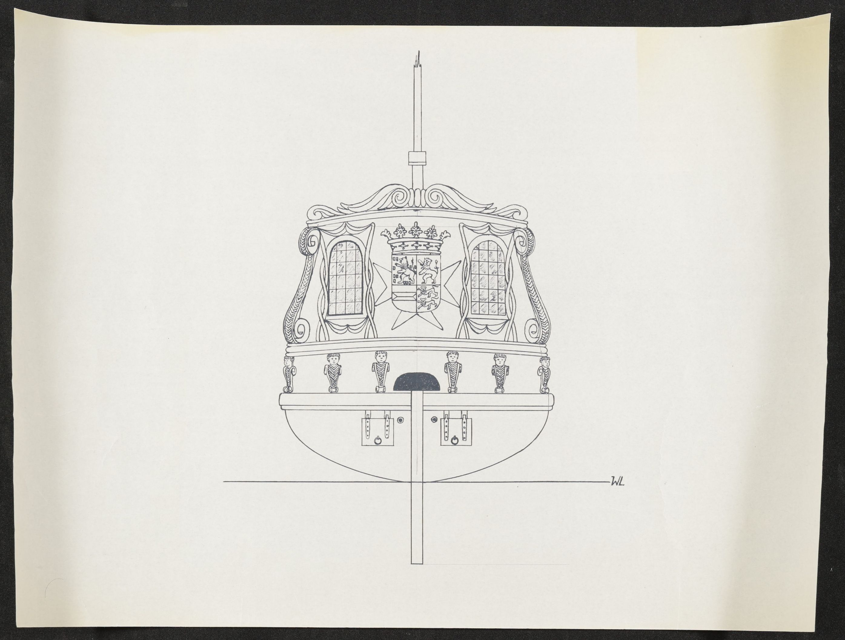 Archivalia verwies unlängst auf die digitalen Angebote des Stadtarchiv Emmerich. Dort finden sich im Bestand „5.5 Schiffspläne und Abbildungen“ unter der lfd. Nr. 11 5 drei ungenaue Entwurfszeichnungen (Breite x Höhe in mm: 410 x 300 )eines Schiffes für Johann Moritz von Nassau-Siegen.